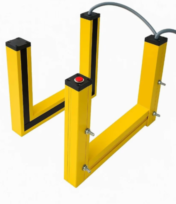 The U shaped configuration surrounds critical machine areas creating a secure zone that minimizes the risk of accidental intrusion. This is especially useful in high speed machinery where operator safety is a constant concern. Instead of relying on physical guards that restrict access these light curtains provide invisible protection while allowing smooth workflow.